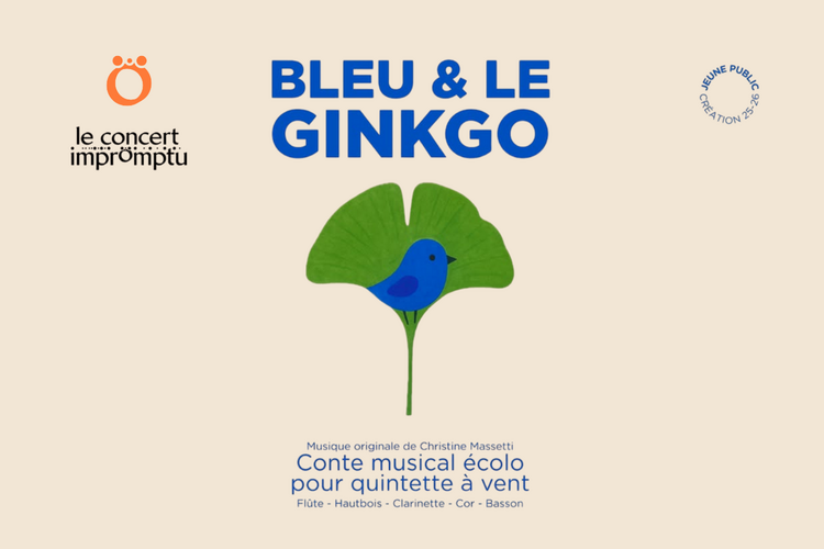 - La nouvelle création jeune public du quintette à vent "Le Concert Impromptu", composé par Christine Massetti, compositrice et professeure de violon au Conservatoire d'Ivry : "Bleu et le Gingko"